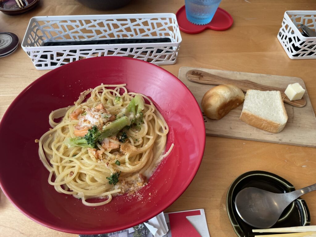私はサーモンとブロッコリーが入ったアーモンドクリームパスタ🍝もちろん美味しい😋😋