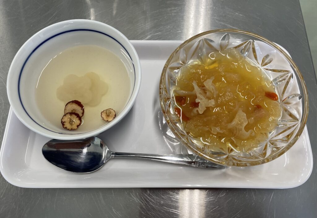 左は梨が入ったお茶🍵右は白キクラゲが入ったお茶🍵