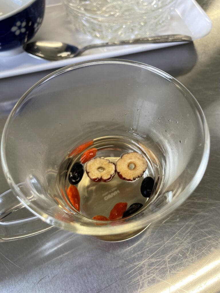その後、お茶セットの中から、自分でブレンドしてお茶を作りました♪なつめとクコの実、黒豆を入れてみました🍵