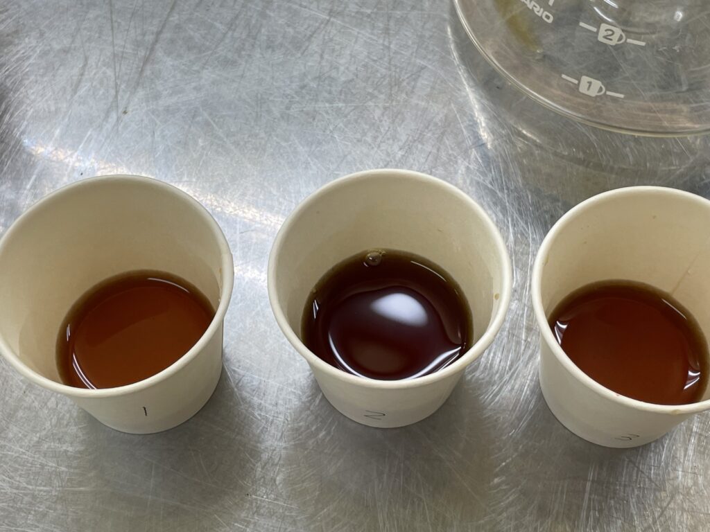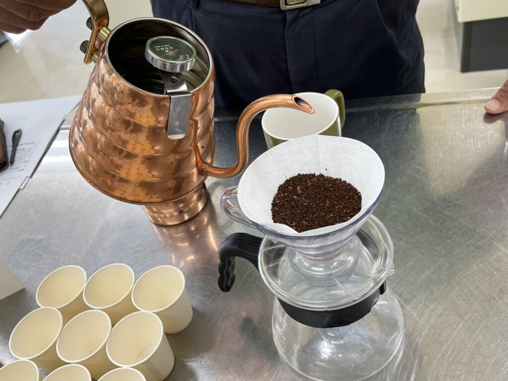 それぞれの班でいれたコーヒーを飲み比べします。同じ豆を使っているのに、香り、酸味、濃さ、甘さなど微妙に違うんですよね〜