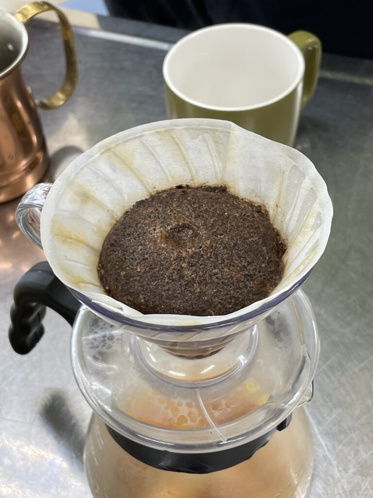 1回目の注湯で粉が膨らんできます。まるでコーヒー豆が呼吸しているようにポコポコ動き出します。